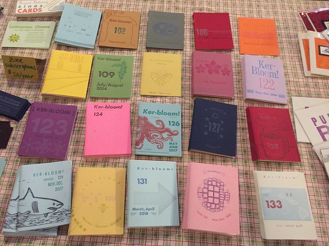 Artnoose began letterpress printing the zine Ker-bloom! in the summer of 1996, merging the world of zines and letterpress with inspiring results. She has been printing Ker-bloom! continuously for over 20 years (every other month without a single late issue, no small feat for a zinester) using her Vandercook Model 4 Press in Berkeley, California.