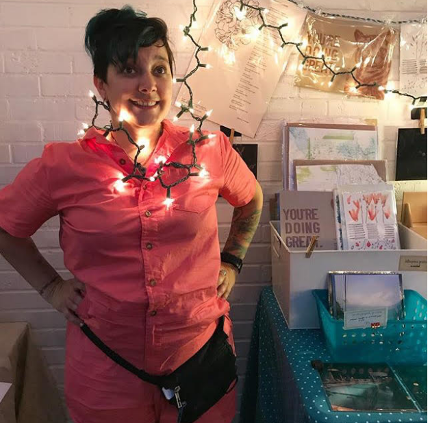 She is the force behind Gutwrench Press—a letterpress shop, zine mini-distribution, and home of the Keep Writing Project, a postcard subscription she started in 2008 while an undergrad at Louisiana State University.